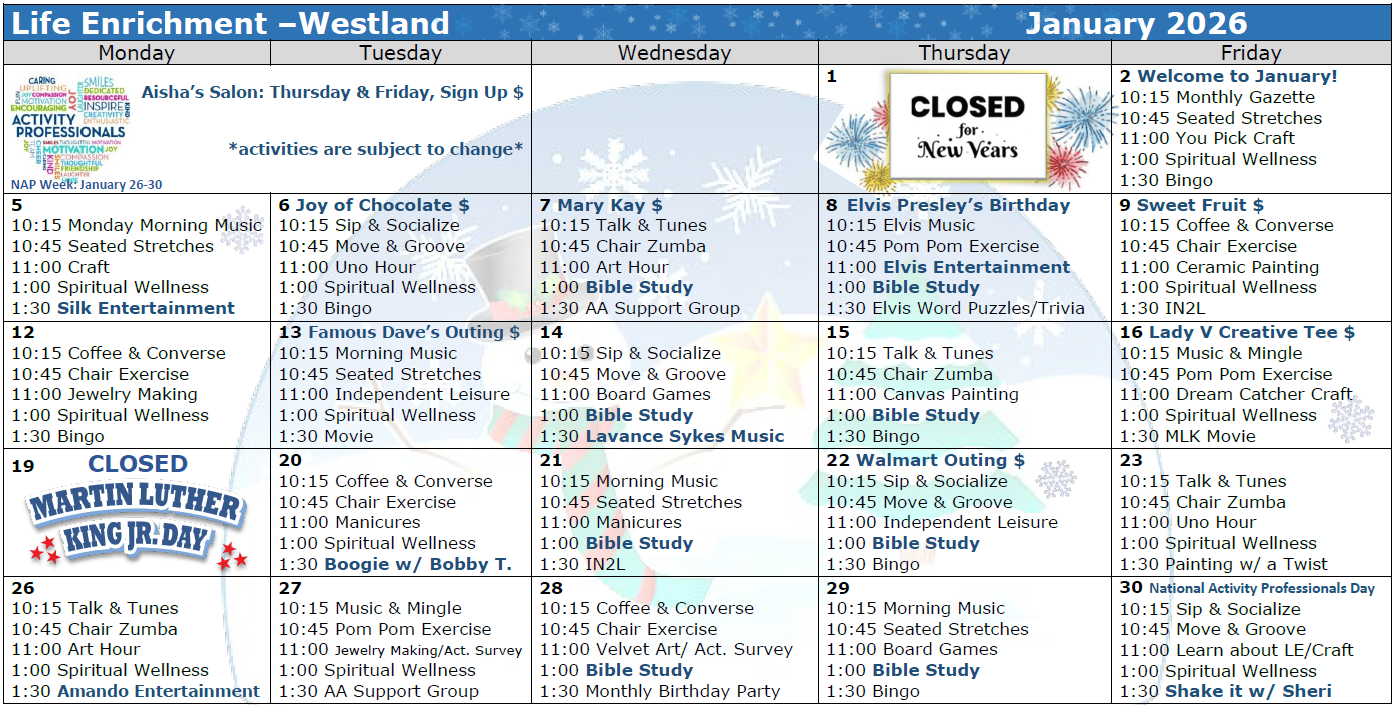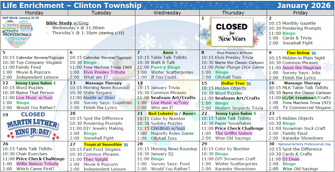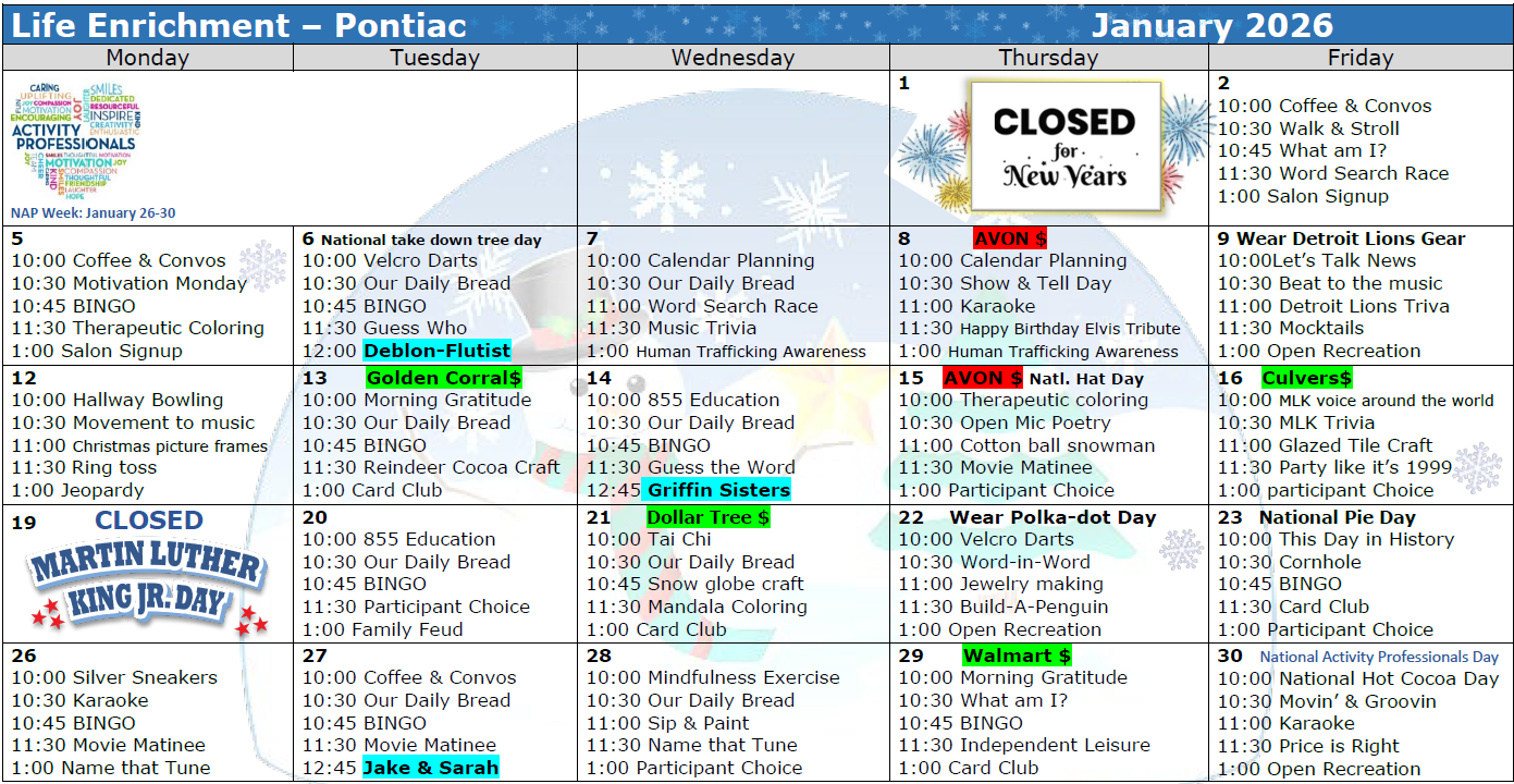 Meet new friends over a game of bingo, show off your passion for singing, dancing or art, participate in group parties or relax over coffee and cartoons. For participants looking to enhance their medical care with social activities, our health centers deliver. See what fun is on the schedule this month.